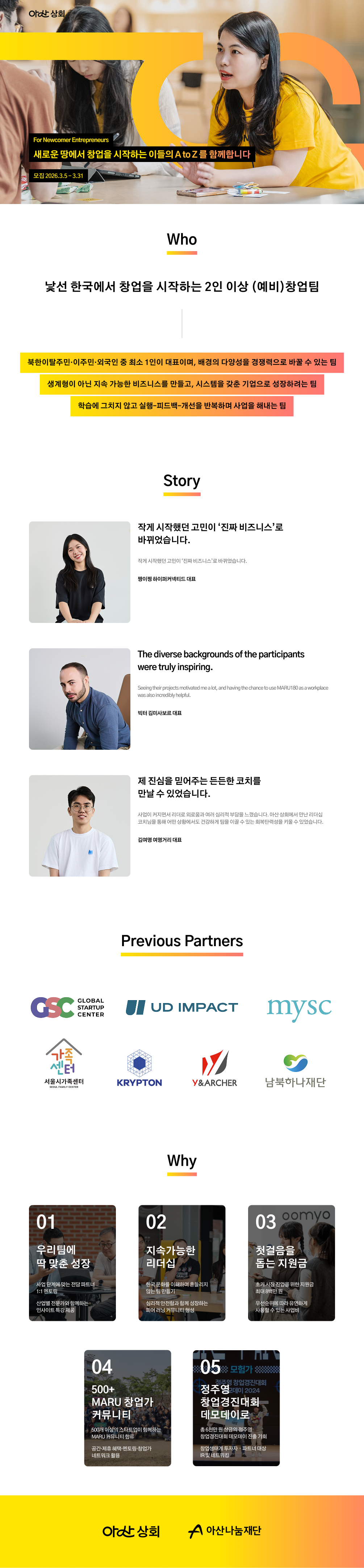 Asan Sanghoe supports entrepreneurs from diverse backgrounds—including North Korean defectors, immigrants, and foreign nationals—who are building sustainable ventures in the Korean market.